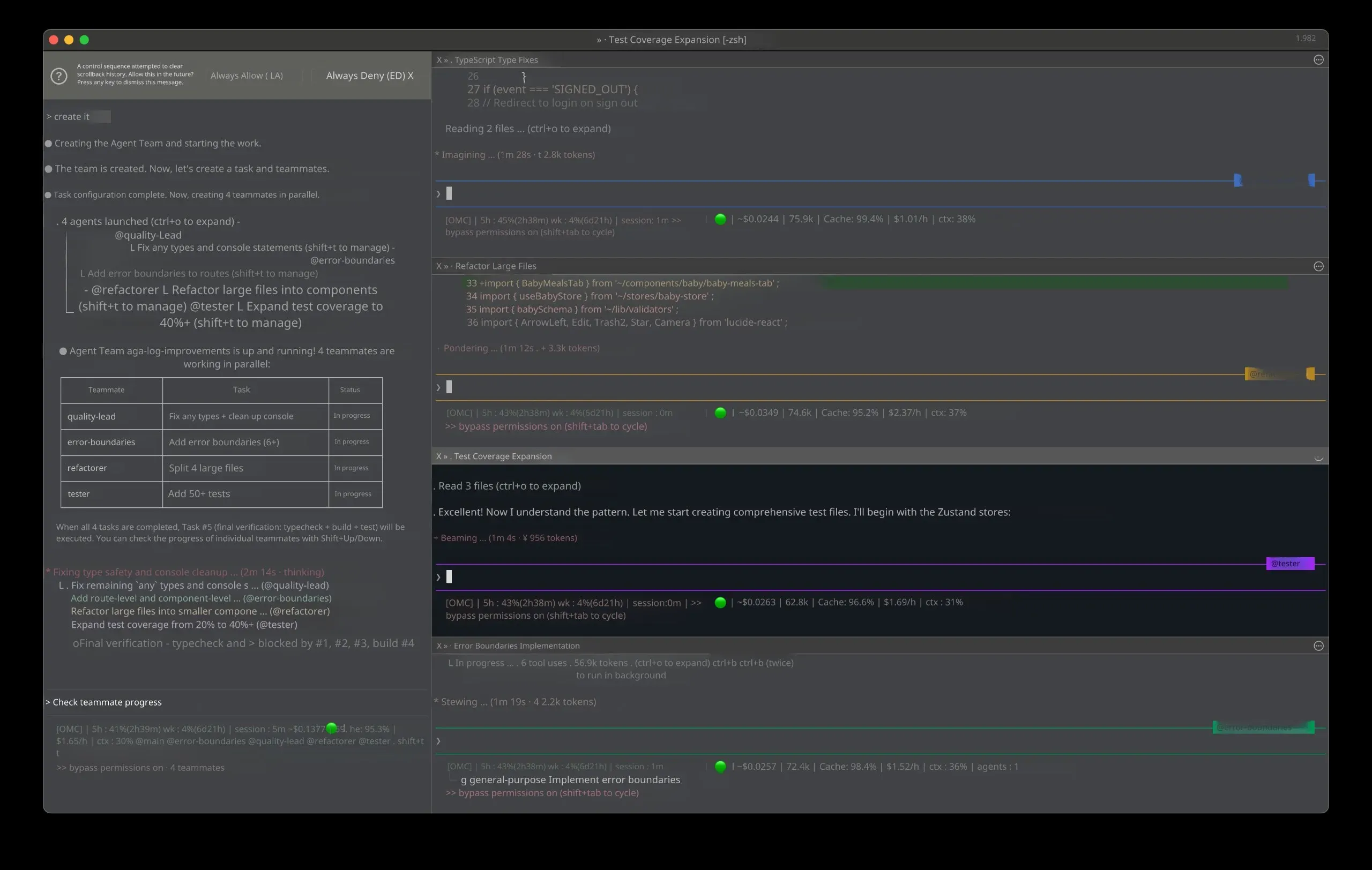 - Mid-task intervention: Each teammate session has chat input, so you can adjust direction or add instructions during work.