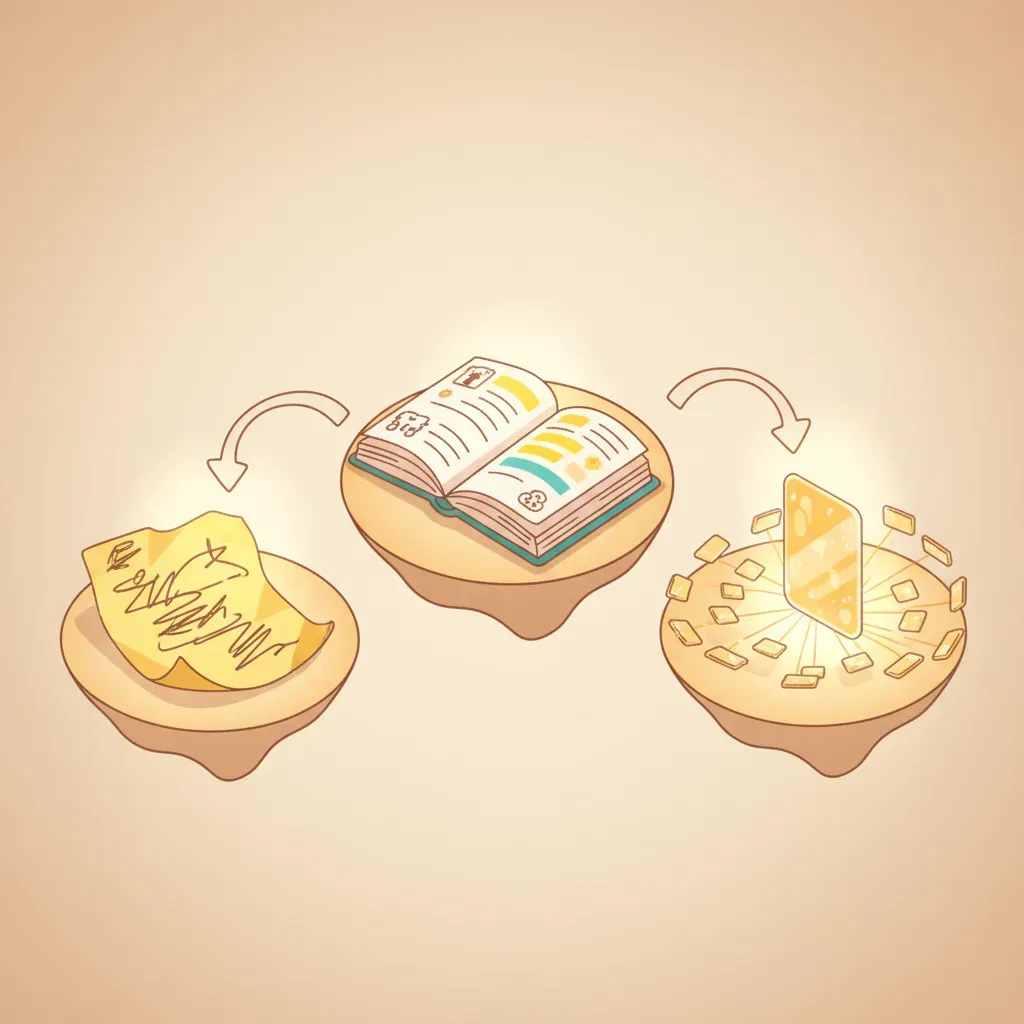 Fleeting Notes는 쌓아두면 의미 없습니다. 주 1회 리뷰하고 Permanent Note로 발전시키거나 삭제하세요.