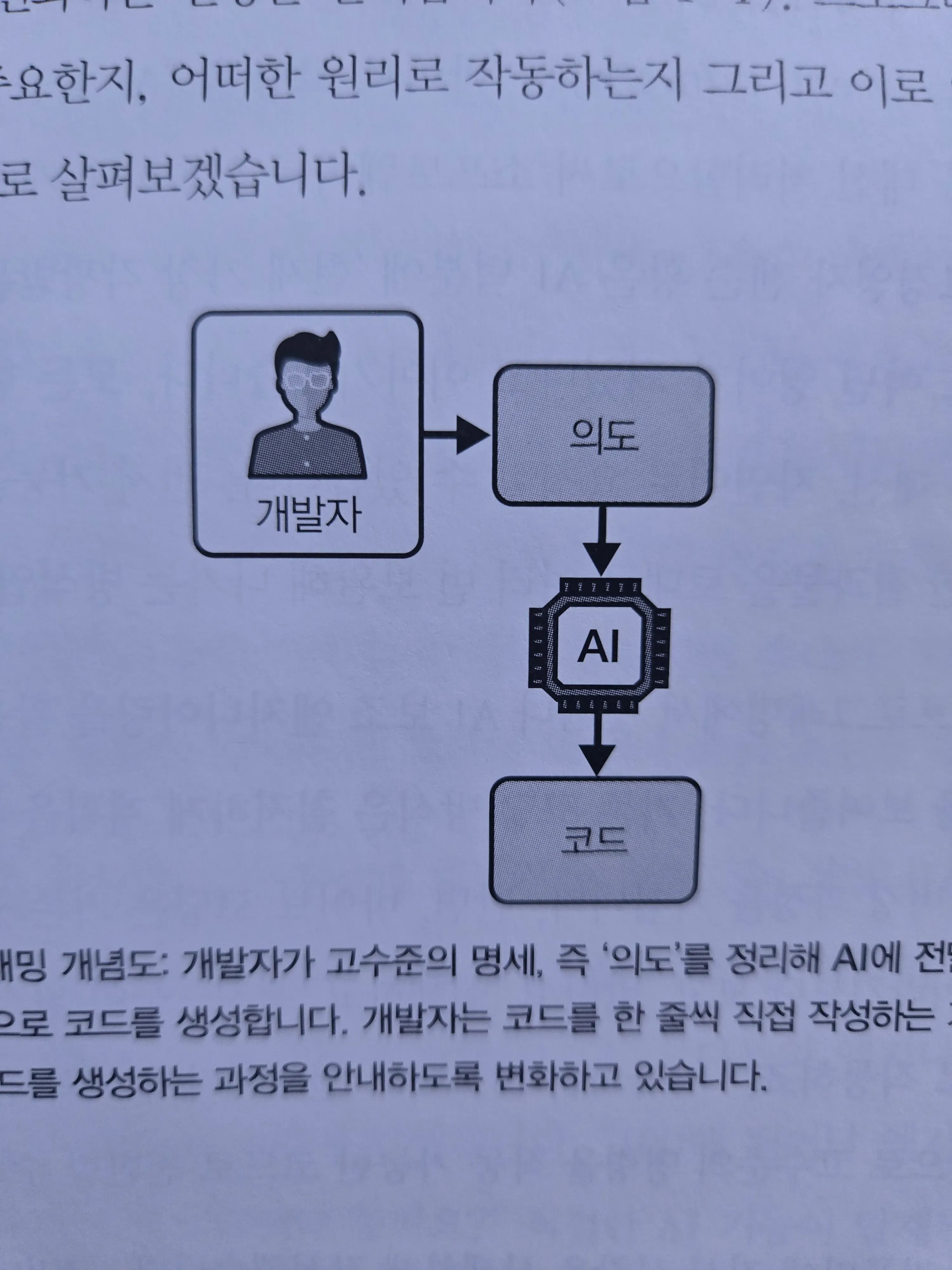 이제 한 줄 한 줄 작성하던 기존 방식을 벗어나, AI에게 직접 의도를 전달하며 개발하는 방식을 이 책에서는 의도 중심 프로그래밍이라고 정의합니다. 이는 페어 프로그래밍과 유사하지만, 사람 대 사람이 아닌 AI와 함께하는 페어 프로그래밍입니다. 마지막으로 모델, 프롬프트, 툴 등 시작하기에 앞서 기본적으로 알아야 할 것들을 다룹니다.